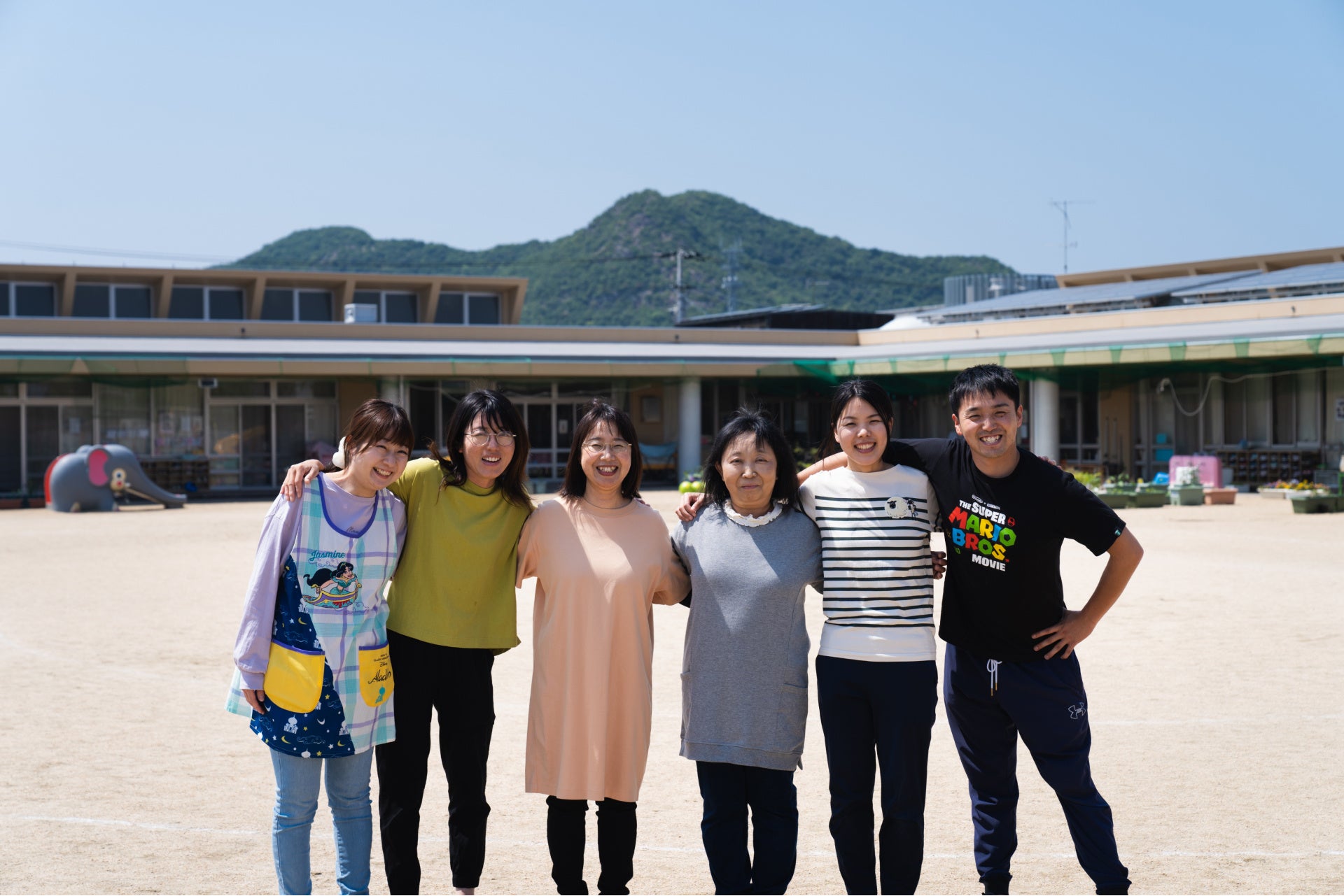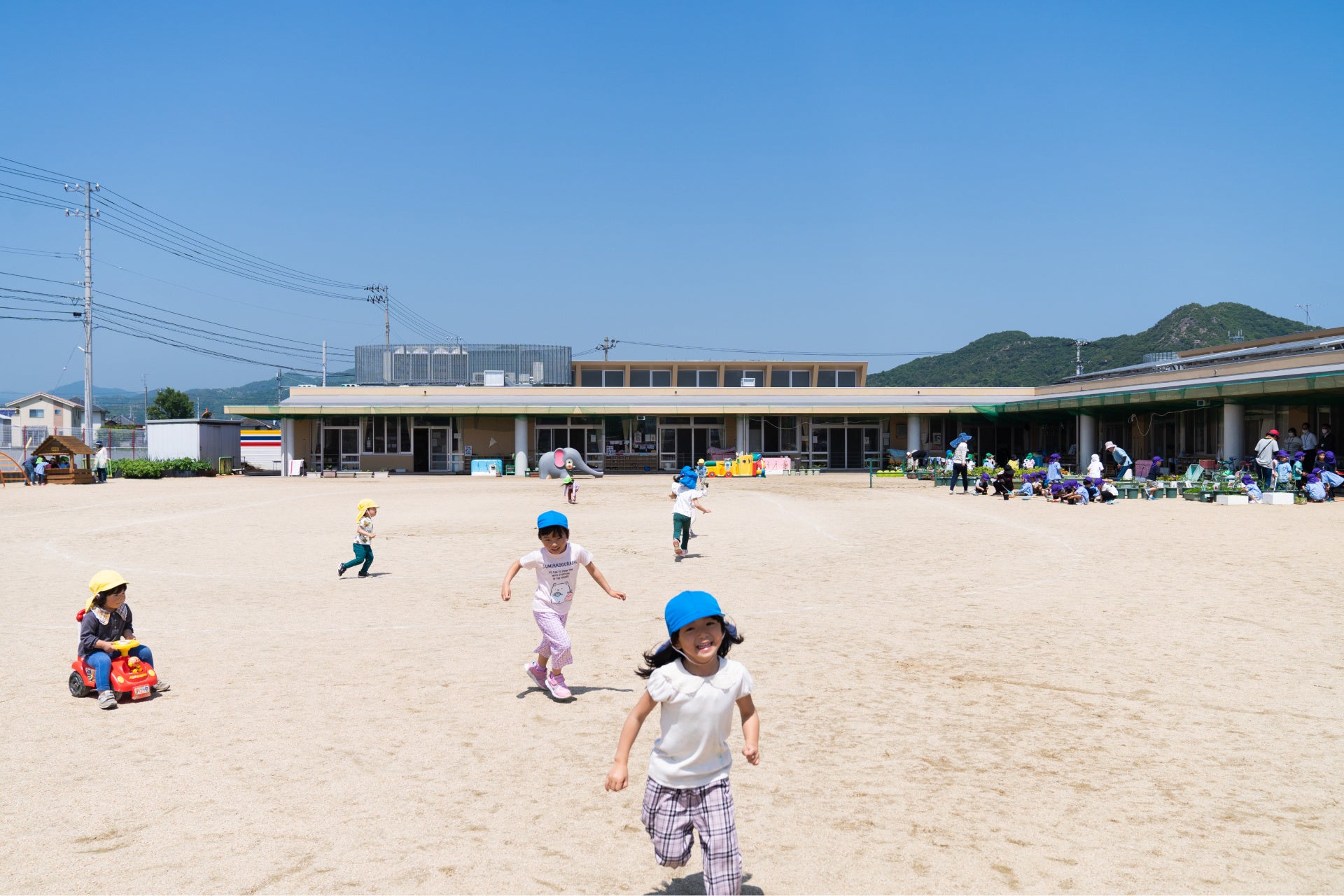 引田こども園は、田畑に囲まれていて、瀬戸内海や山々も近く自然豊かな環境です。園では、園外保育、小学校や地域の方との交流、クッキングなど様々な体験をしてほしい思っています。先生が子どもたちと一緒に、日々体を動かし本気で遊んでいるので、園内にはいつも元気いっぱいの笑顔と笑い声があふれています。また、食育の一環として野菜の栽培から収穫、食べるまでの経験を大切にしています。クラスで育てる野菜をみんなで話し合ったり、自分自身で育てる野菜を決めたりしています。このような活動を通し、子どもたちが自ら考え行動することや困った時に思いを自分の言葉で伝えることができる人へ成長しています。「保育園留学®️」に参加される子どもたちも短い期間ではありますが、季節や年齢に応じた様々な体験が待っていますので、ぜひご来園ください。
