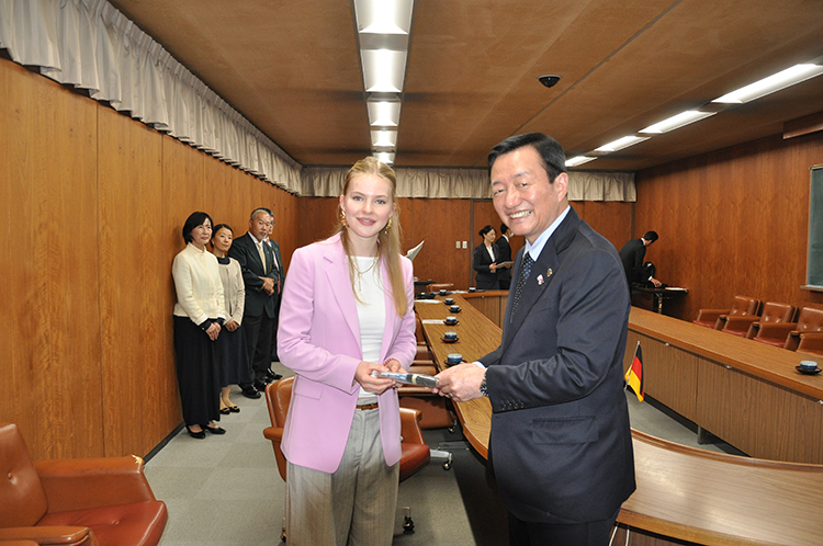 フィリーネさんは「日本での新しい出会い、ホストファミリーと過ごした時間が楽しかった。出会った人々の優しさに感動し、その姿勢を学びたいとも思った。これからも異なる文化について学ぶことにオープンでいたいと思う。お箸で食べることが大好きになった、家族にも教えてドイツでも続けたい。この旅を実現していただいたすべての方に感謝を伝えたい」と笑顔を見せた。