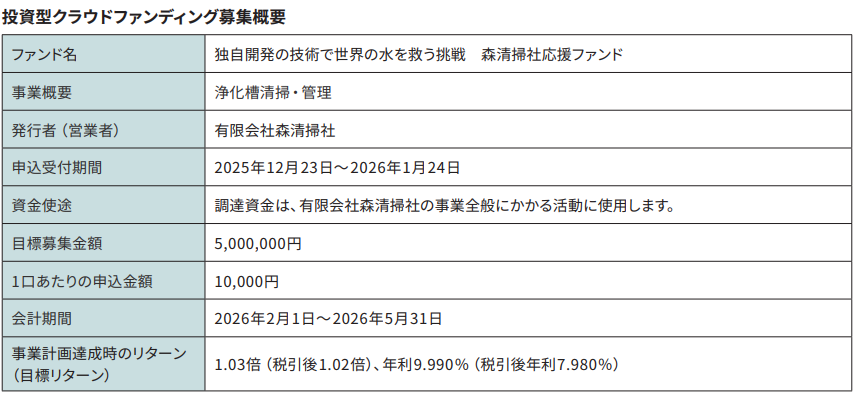ソニー銀行は2025年12月23日(火)、投資型クラウドファンディング「Sony Bank GATE」において、有限会社森清掃社(香川県琴平町)による新プロジェクトの出資募集を開始する。香川県内企業のファンド組成は、同プラットフォームとして初の事例となる。