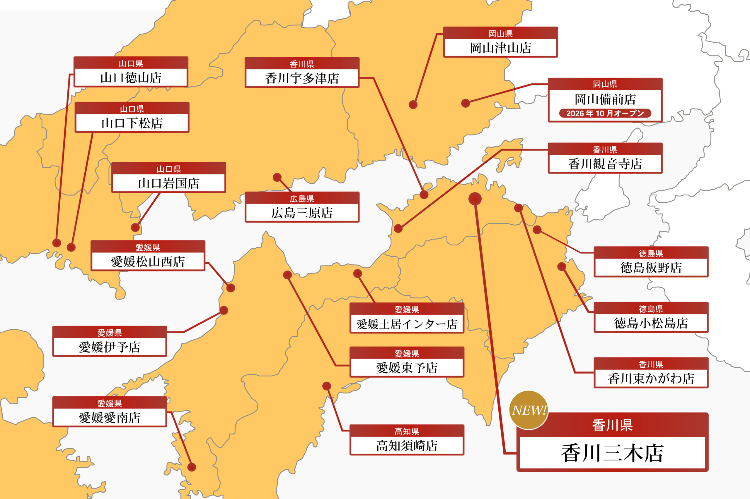 新店舗となる香川三木店には、長期滞在や観光の拠点に嬉しい設備が凝縮されている。