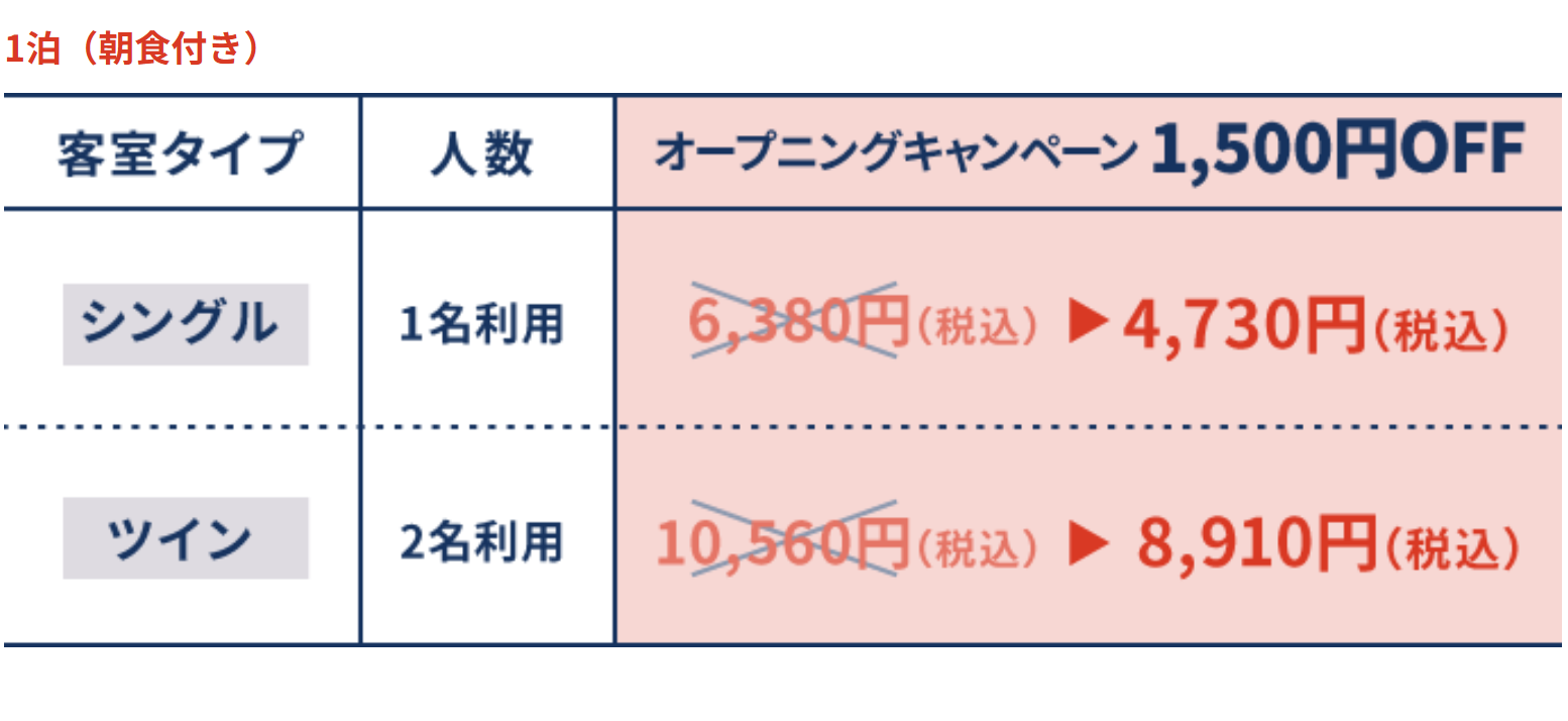 今回のオープンを記念し、さらにお得に宿泊できる「開業記念キャンペーン」が実施される。